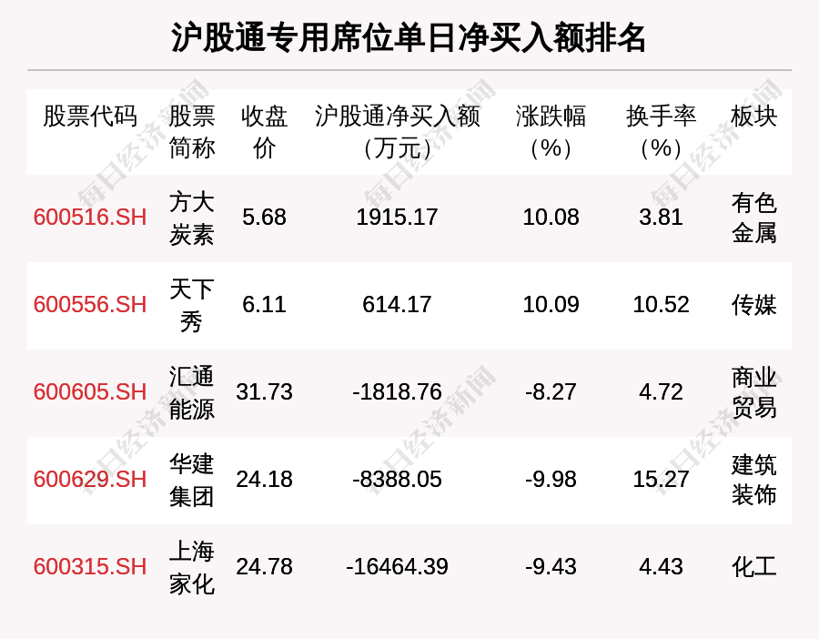 在龍虎榜中,涉及滬股通專用席位的個(gè)股有5只,方大炭素的滬股通專用席位凈買入額最大,凈買入1915.17萬元。