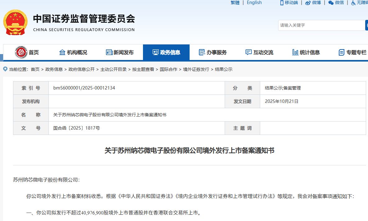 近日,A股科創(chuàng)板上市公司納芯微(SH688052)向港交所遞交了IPO(首次公開募股)申請文件,中金公司、中信證券、建銀國際為聯(lián)席保薦人。納芯微在今年4月25日首次遞表,這是更新數(shù)據(jù)后再次向港交所遞表。就在上周二(10月21日),納芯微港股IPO已獲中國證監(jiān)會備案,其擬在港交所發(fā)行不超過4097.69萬股普通股。