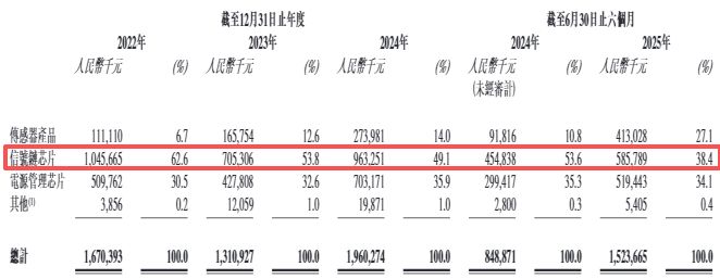 按照產(chǎn)品應(yīng)用領(lǐng)域劃分,納芯微的產(chǎn)品主要用于泛能源領(lǐng)域,在2022年、2023年、2024年和2025年上半年(下簡稱報告期內(nèi)),泛能源領(lǐng)域產(chǎn)品的收入最多,占公司總營收的69.3%、58.8%、49.8%和52.7%,其次為汽車電子領(lǐng)域產(chǎn)品,報告期內(nèi)收入占比分別為23.1%、30.8%、36.7%和34.0%。