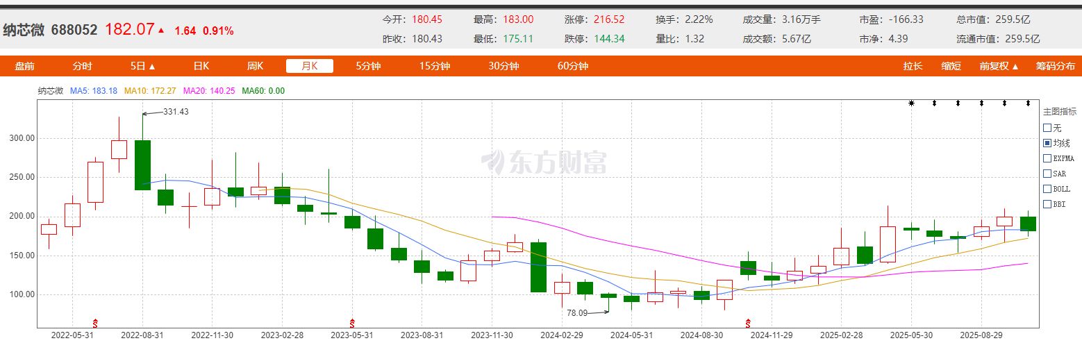 納芯微上市以來月K圖 圖片來源:東方財富網(wǎng)頁截圖