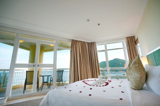 豪華海景房,面積35平方米,樓層2-9層,有陽(yáng)臺(tái),180度海景,大床(2*2米),雙標(biāo)(1.35*2米),90%有浴缸 免費(fèi)寬帶