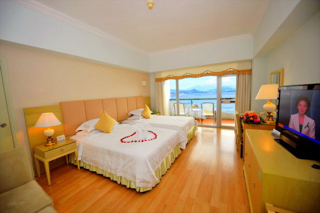 豪華海景大床房 面積:39-45 平方米 樓層:2-8層 海景:180度海景 陽臺(tái):觀海陽臺(tái) 大床:1.8*2米 浴缸:大部分房間有 寬帶:免費(fèi)